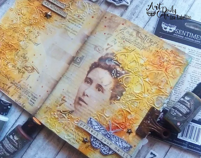 Lisa today with you with a new art journal spread, inspired by the fabulous August Moodboard with its captivating colors.